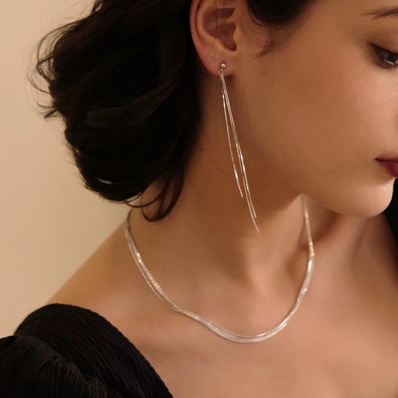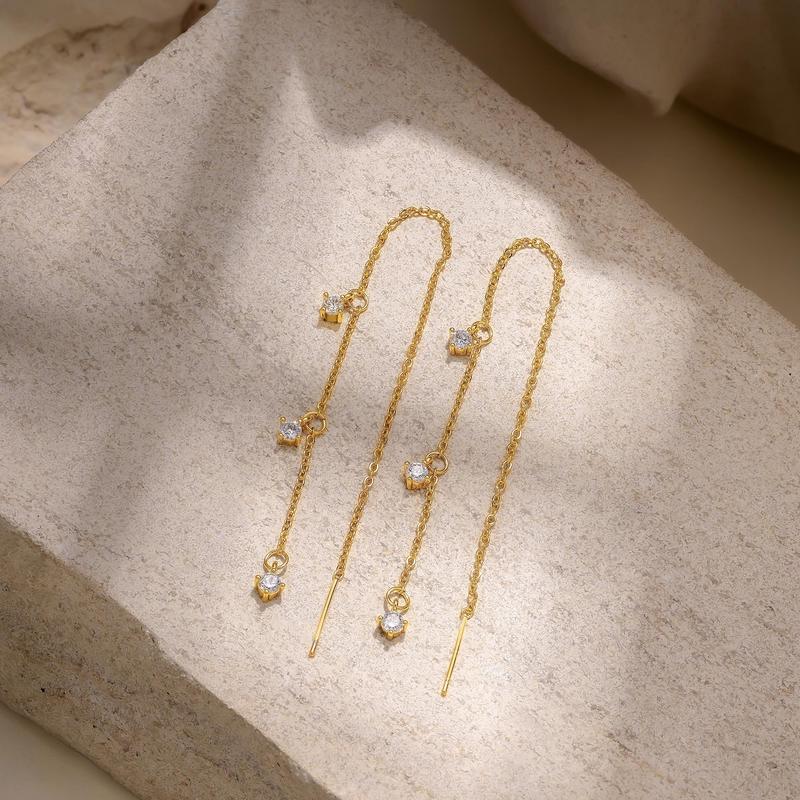 NECOCY 3 Zircon Ear Thread Tassel Pendant Earrings for Women Dainty Long Hanging Chain Trendy Hypoallergenic Dangling Threader Earrings for Fashion Lightweight High Quality Dealsforyoudays